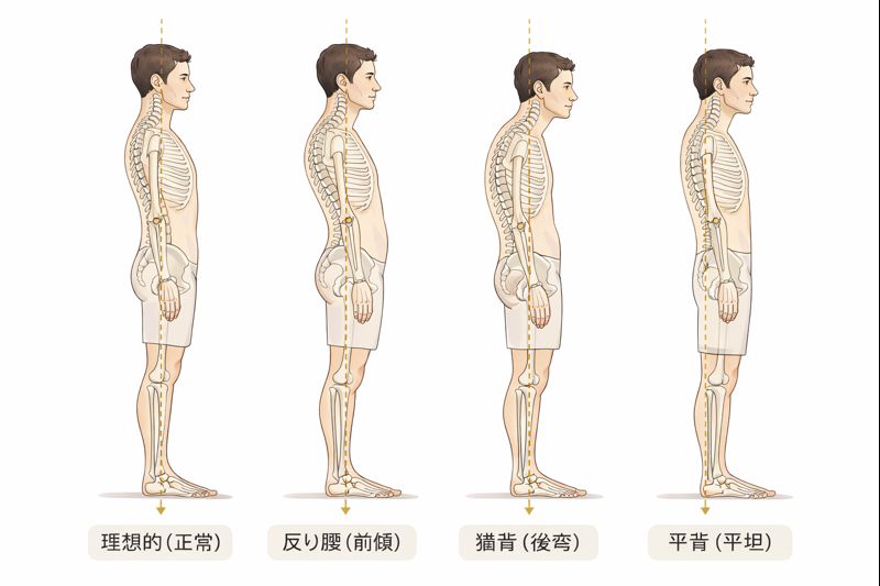 - 背骨のカーブが強すぎないか、弱すぎないか